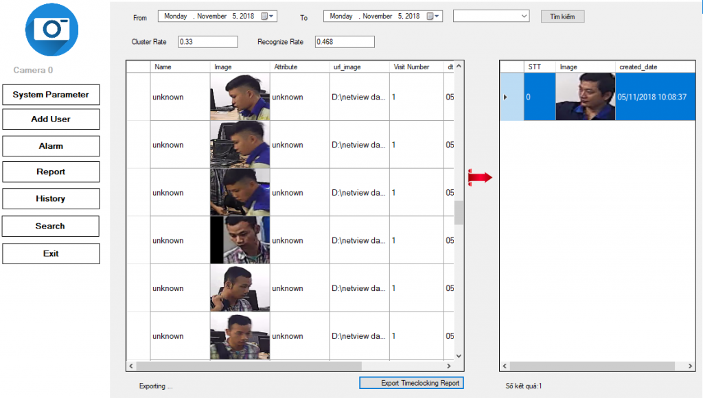 Thống kê số lượt ra vào trên hình ảnh nhận dạng